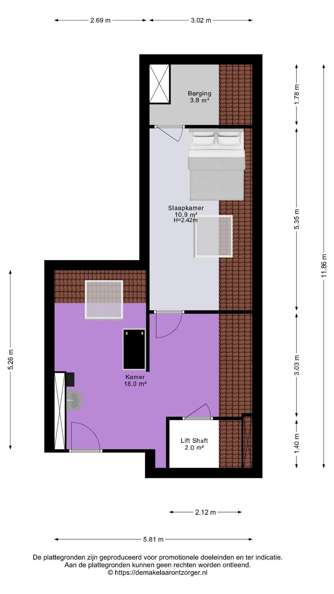 – Slaapkamer met dakraam (ca. 11 m²)